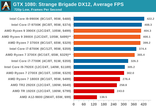 | Strange Brigade DX12 | IGP | Low | Medium | High |